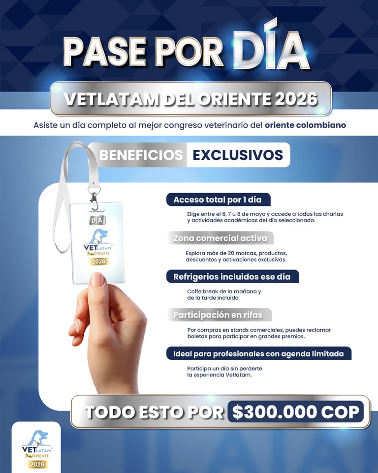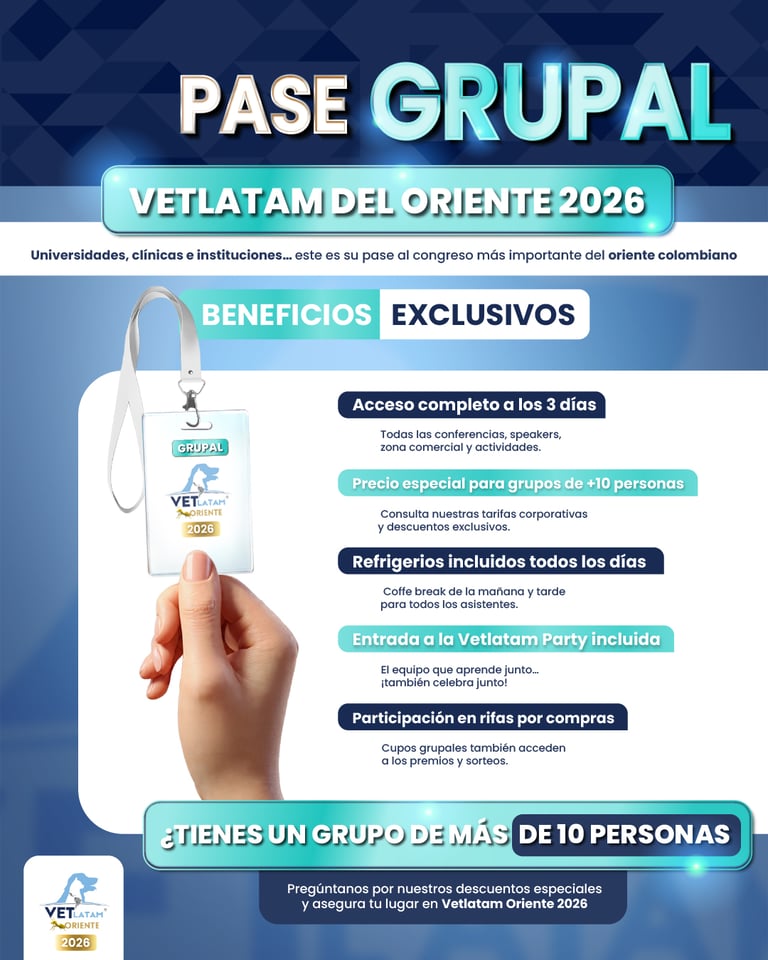 Vetlatam Oriente 2026 es el congreso veterinario más importante del oriente colombiano, donde durante 3 días se reúnen médicos veterinarios, estudiantes, especialistas y marcas líderes para actualizarse, hacer networking y vivir una experiencia académica de alto nivel.